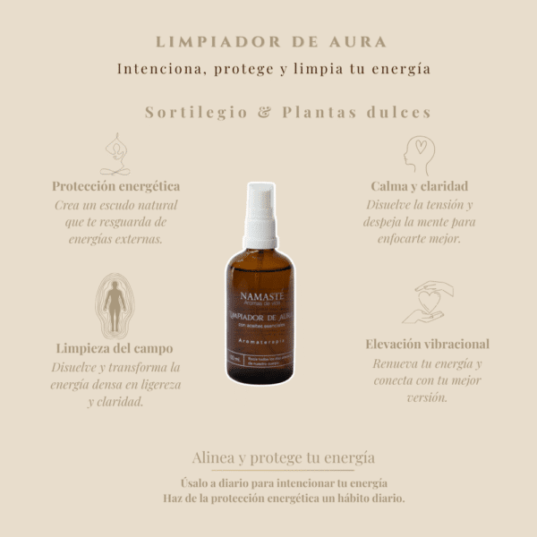 La energía hecha luz, regula, limpia y protege tu aura todos los días con esta sinergia de aceites esenciales y plantas maceradas, especialmente seleccionados para limpiar tu campo áurico.